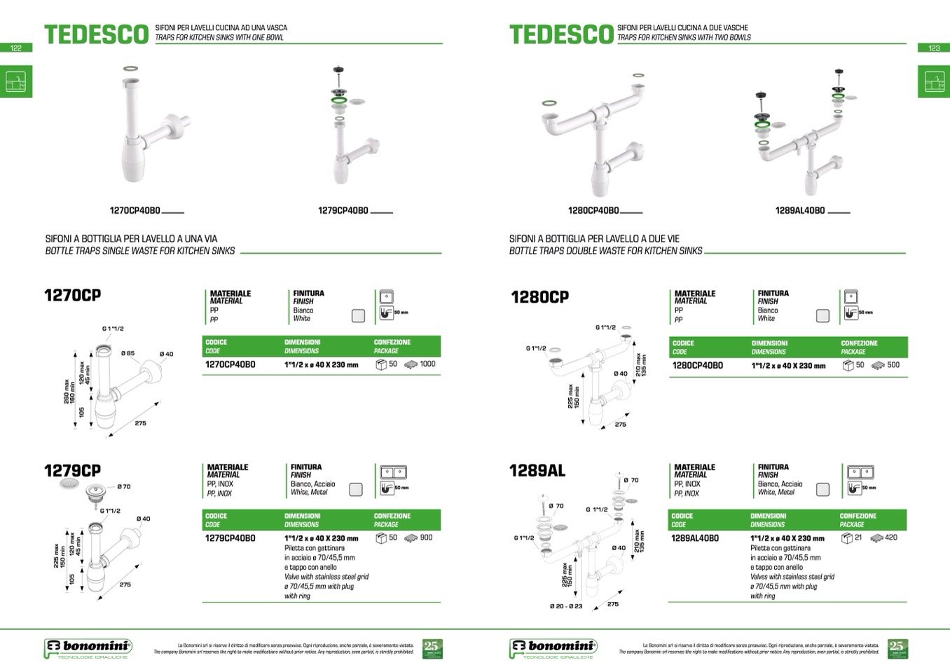 TRAPS FOR KITCHEN SINKS WITH ONE BOWL