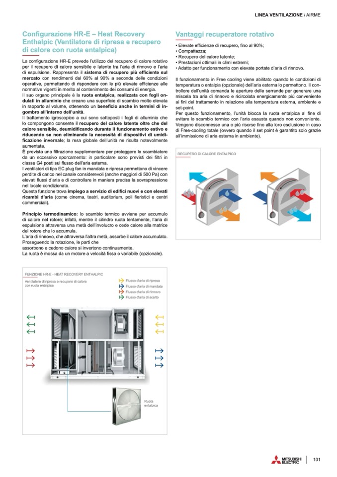 La configurazione HR-E prevede l’utilizzo del recupero di calore rotativ