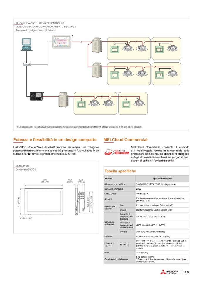 *in un unico sistema è possibile utilizzare contemporaneamente massimo 8 controlli centralizzati AE-C400 o EW-C50 (per un massimo di 400 unità interne collegabili).