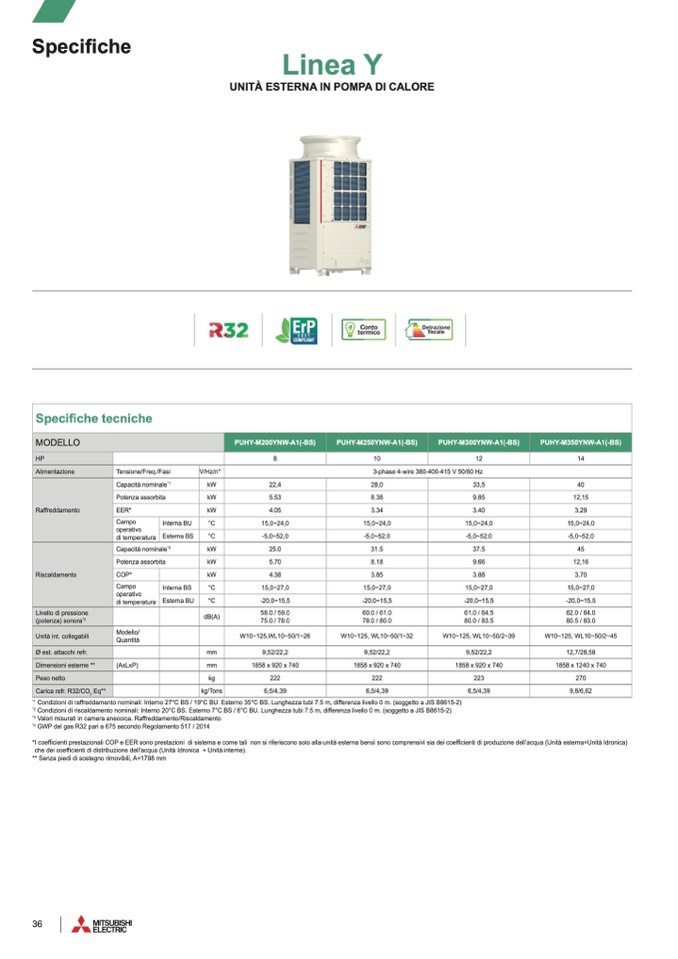 I coefficienti prestazionali COP e EER sono prestazioni di sistema e come tali non si riferiscono solo alla unità esterna bensì sono comprensivi sia dei coefficienti di produzione dell’acqua (Unità esterna+Unità Idronica