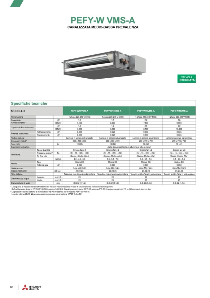 ione statica esterna è impostata su 15 Pa in fabbrica per il modello PEFY-W VMS-