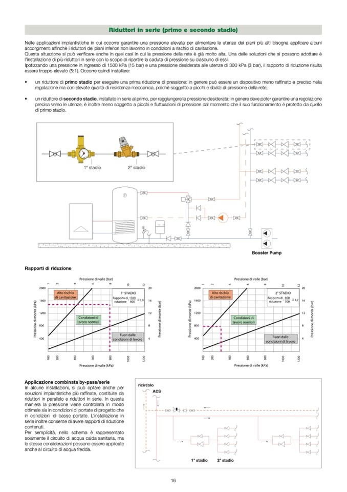 l’installazione di più riduttori in serie con lo scopo di ripartire la caduta di pressione su ciascuno di essi.