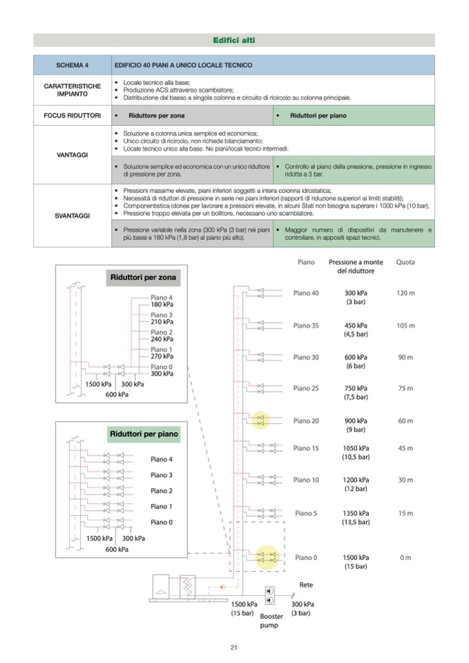 più bassi e 180 kPa (1,8 bar) al piano più alto).
