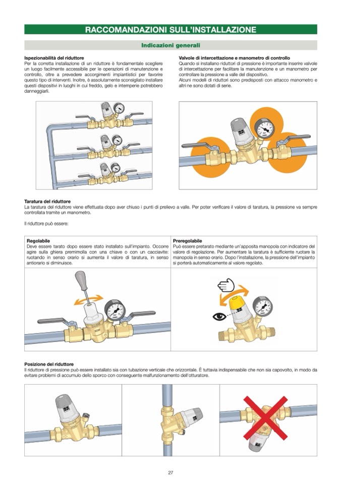 La taratura del riduttore viene effettuata dopo aver chiuso i punti di prelievo a valle. Per poter veri