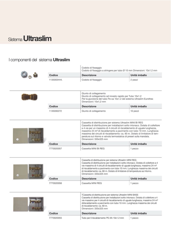 Per la giunzione del tubo Pe-xa 10x1.2 del sistema Ultraslim Eurothex