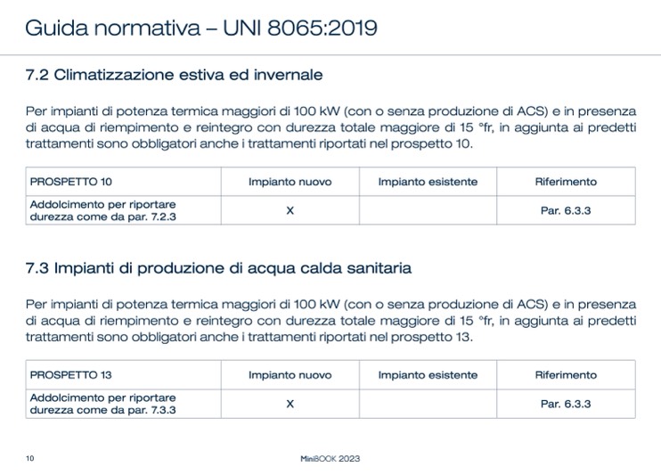 di acqua di riempimento e reintegro con durezza totale maggiore di 15 °fr, in aggiunta ai predetti