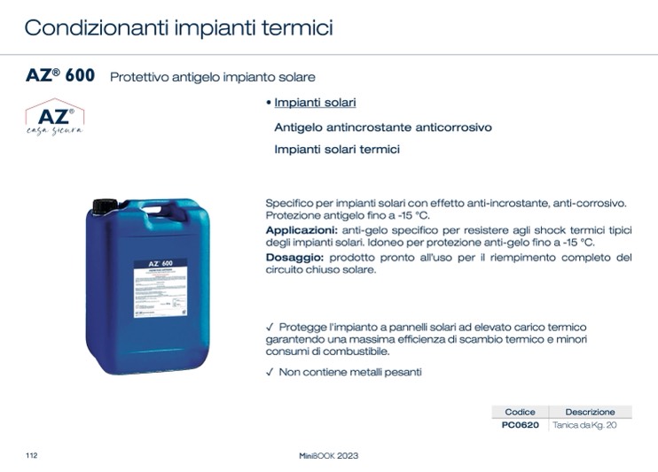 Specifico per impianti solari con effetto anti-incrostante, anti-corrosivo.