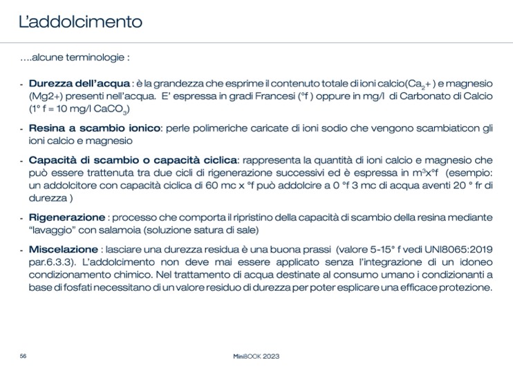- Miscelazione : lasciare una durezza residua è una buona prassi (valore 5-15° f vedi UNI8065:2019