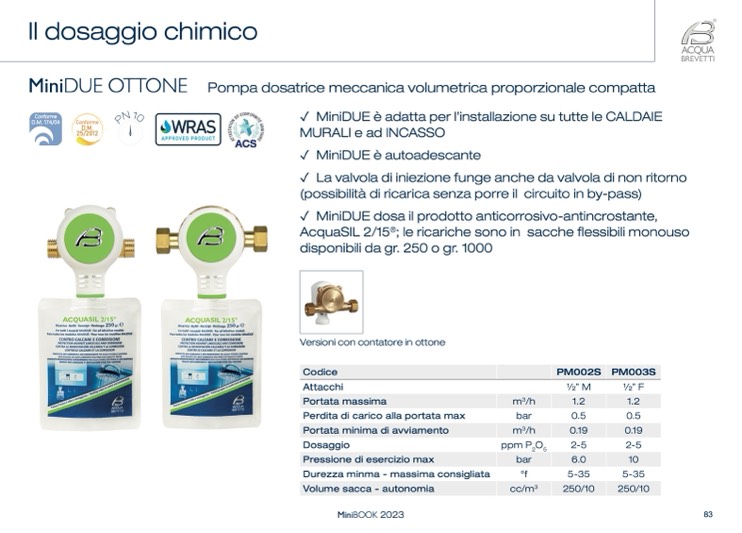 ✓ MiniDUE dosa il prodotto anticorrosivo-antincrostante,