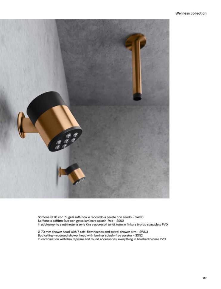 Soffione Ø 70 con 7 ugelli soft-flow e raccordo a parete con snodo - SWN3