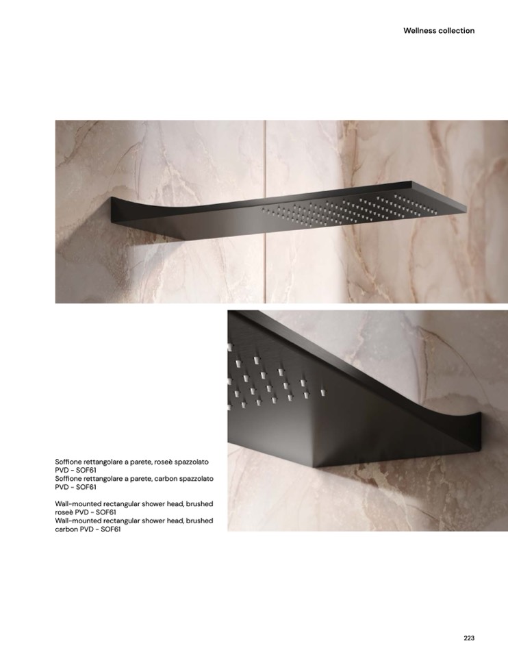 Soffione rettangolare a parete, carbon spazzolato