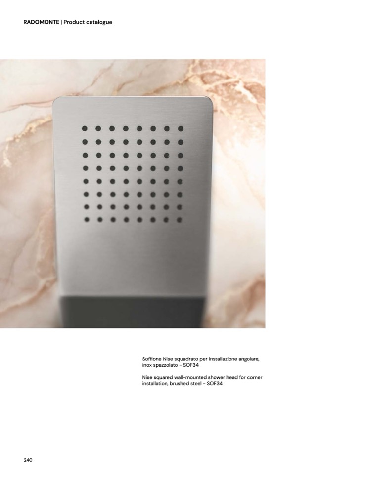 Soffione Nise squadrato per installazione angolare,