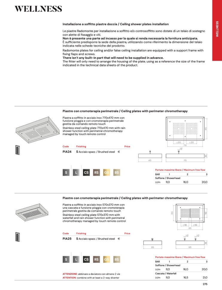 Piastre con cromoterapia perimetrale / Ceiling plates with perimeter chromotherapy