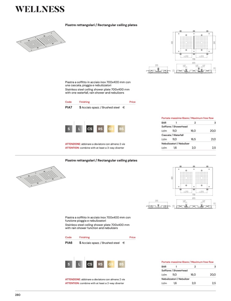 Piastra a soffitto in acciaio inox 700x400 mm con