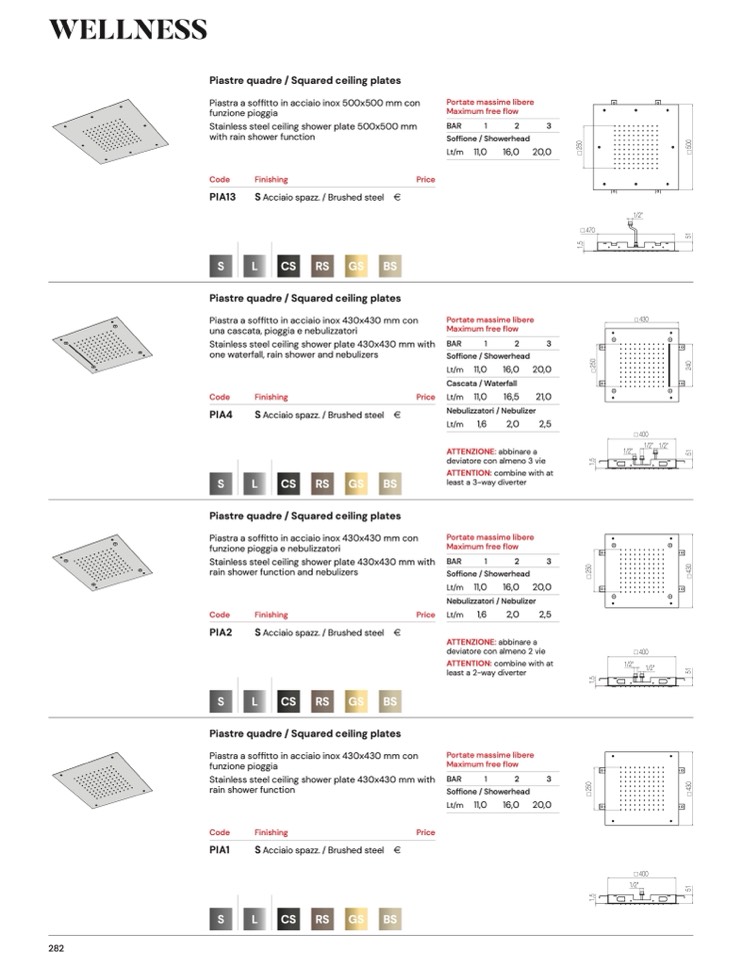 Piastra a soffitto in acciaio inox 430x430 mm con