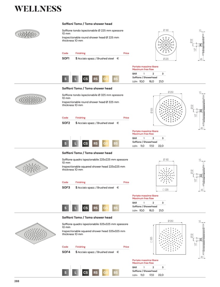 Soffione tondo ispezionabile Ø 325 mm spessore