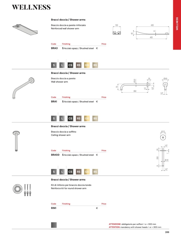 ATTENZIONE: obbligatorio per soffioni > o = 300 mm