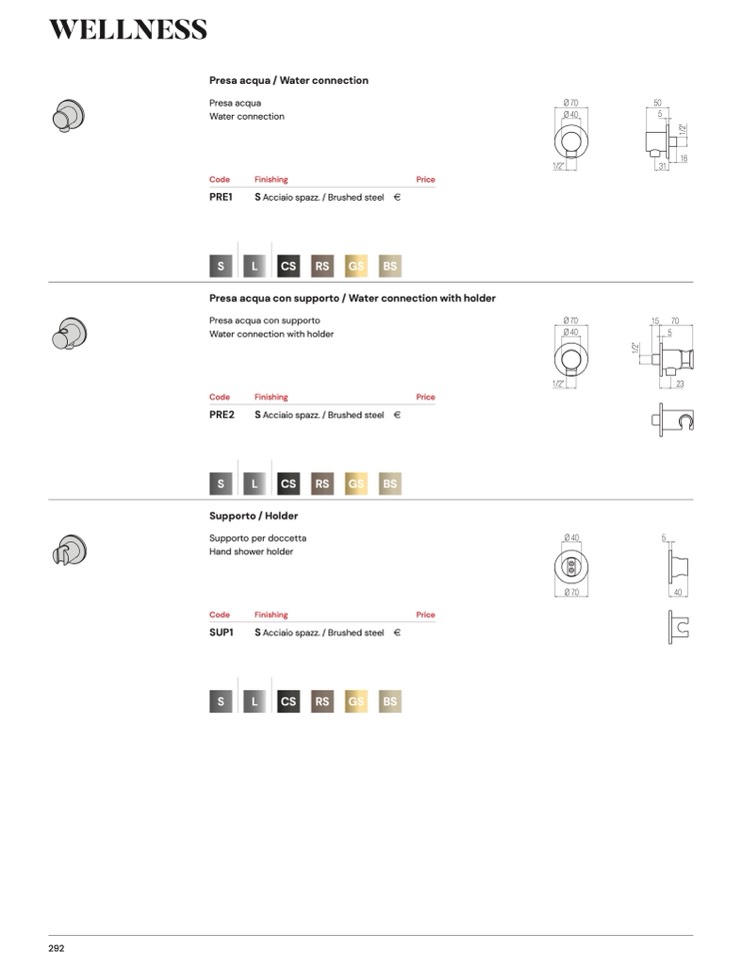 S Acciaio spazz. / Brushed steel €