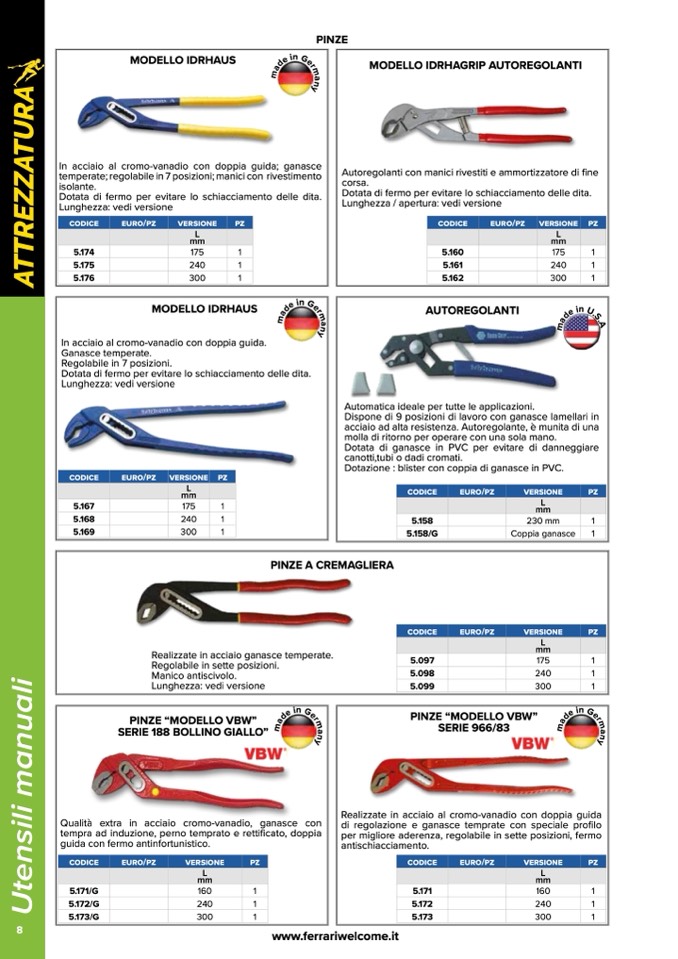 In acciaio al cromo-vanadio con doppia guida; ganasce