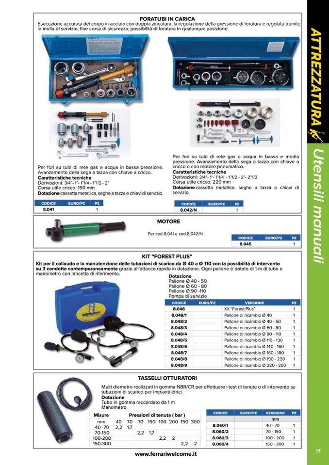 Per fori su tubi di rete gas e acqua in bassa pressione.