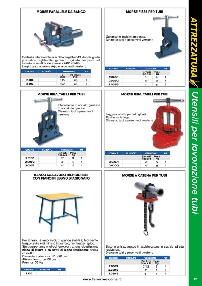 Diametro tubi e peso: vedi versione