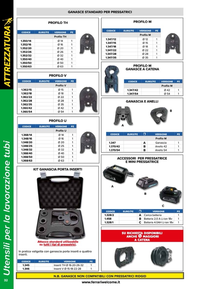 n.b. ganasce non compatibili con pressatrici ridgid
