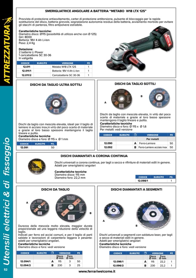 Diametro disco: Ø115 (possibilità di utilizzo anche con Ø 125)
