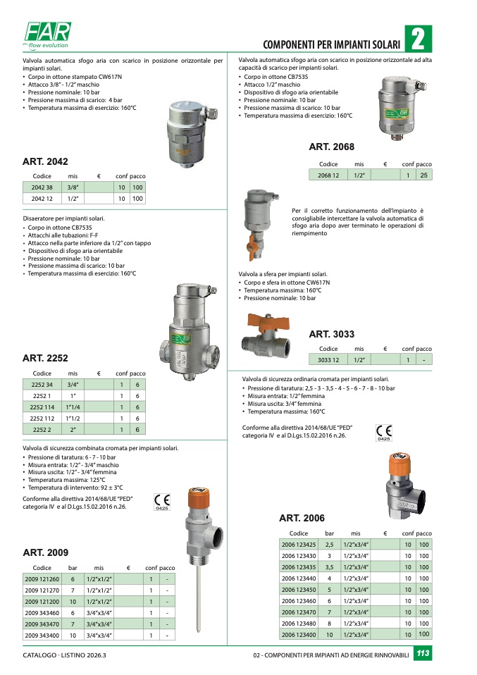 Pressione di taratura: 2,5 - 3 - 3,5 - 4 - 5 - 6 - 7 - 8 - 10 ba