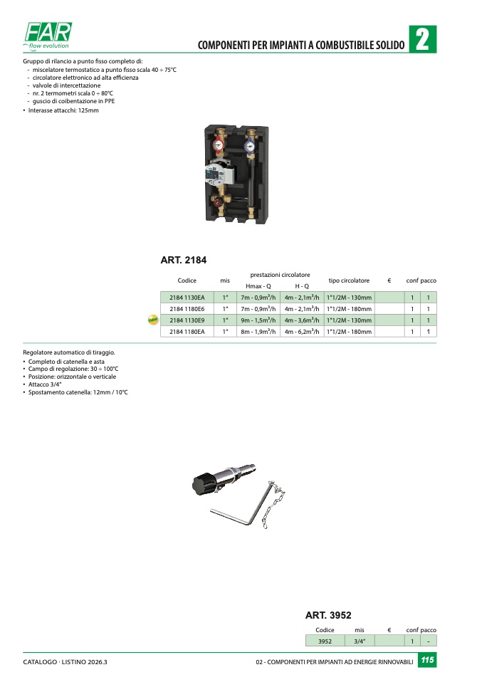 - miscelatore termostatico a punto fisso scala 40 ÷ 75°C