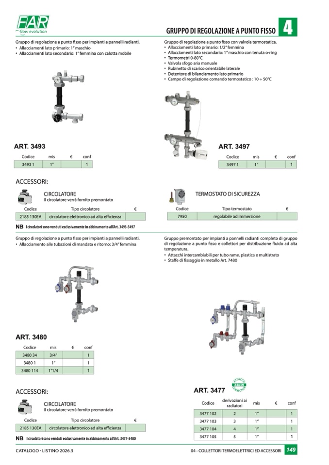 di regolazione a punto fisso e collettori per distribuzione fluido ad alt