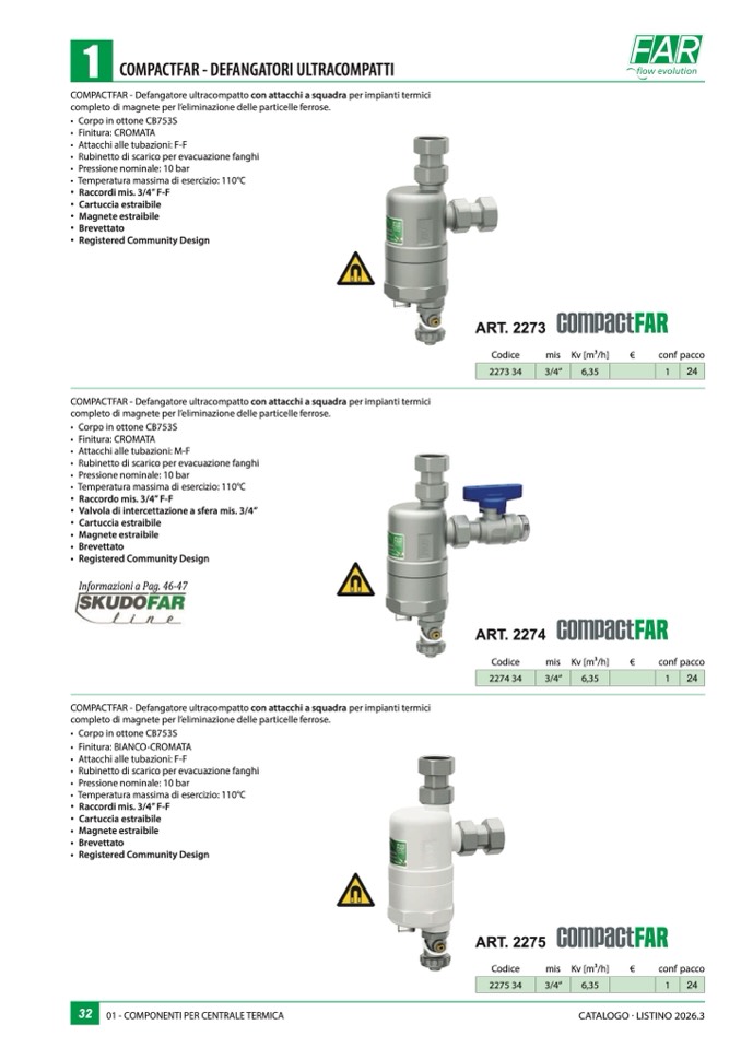 COMPACTFAR - Defangatore ultracompatto con attacchi a squadra per impianti termici