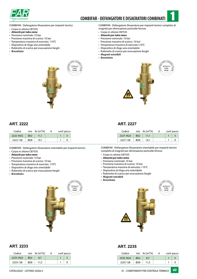 COMBIFAR - Defangatore-Disaeratore per impianti termici.