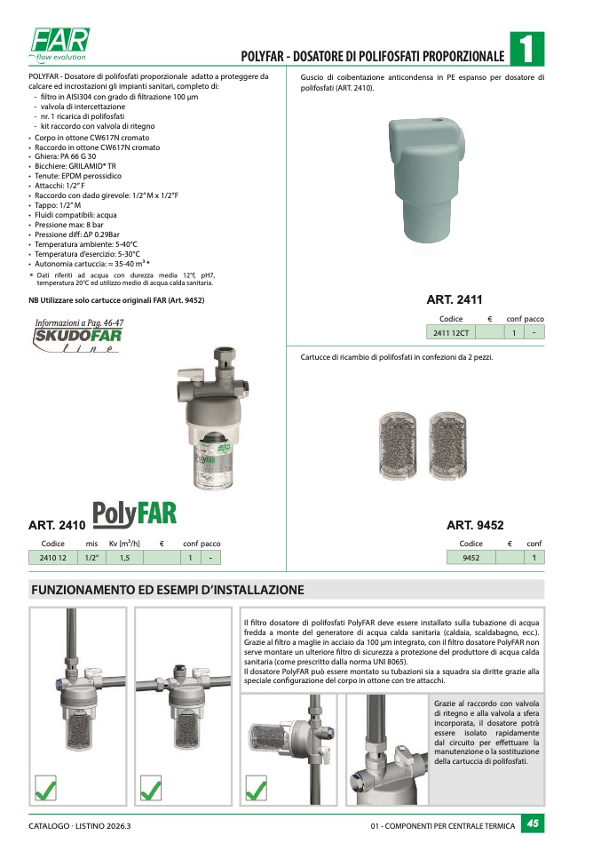 filtro dosatore di polifosfati PolyFAR deve essere installato sulla tubazione di acqua