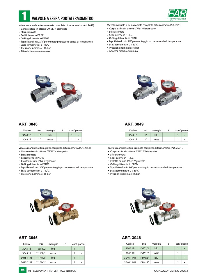 Valvola manuale a sfera cromata completa di termometro (Art. 2651)