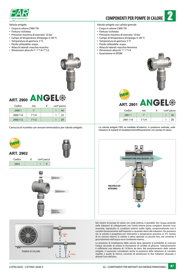 ciò, la valvola è progettata per intervenire a temperature prossime ai 3°C. Dotata