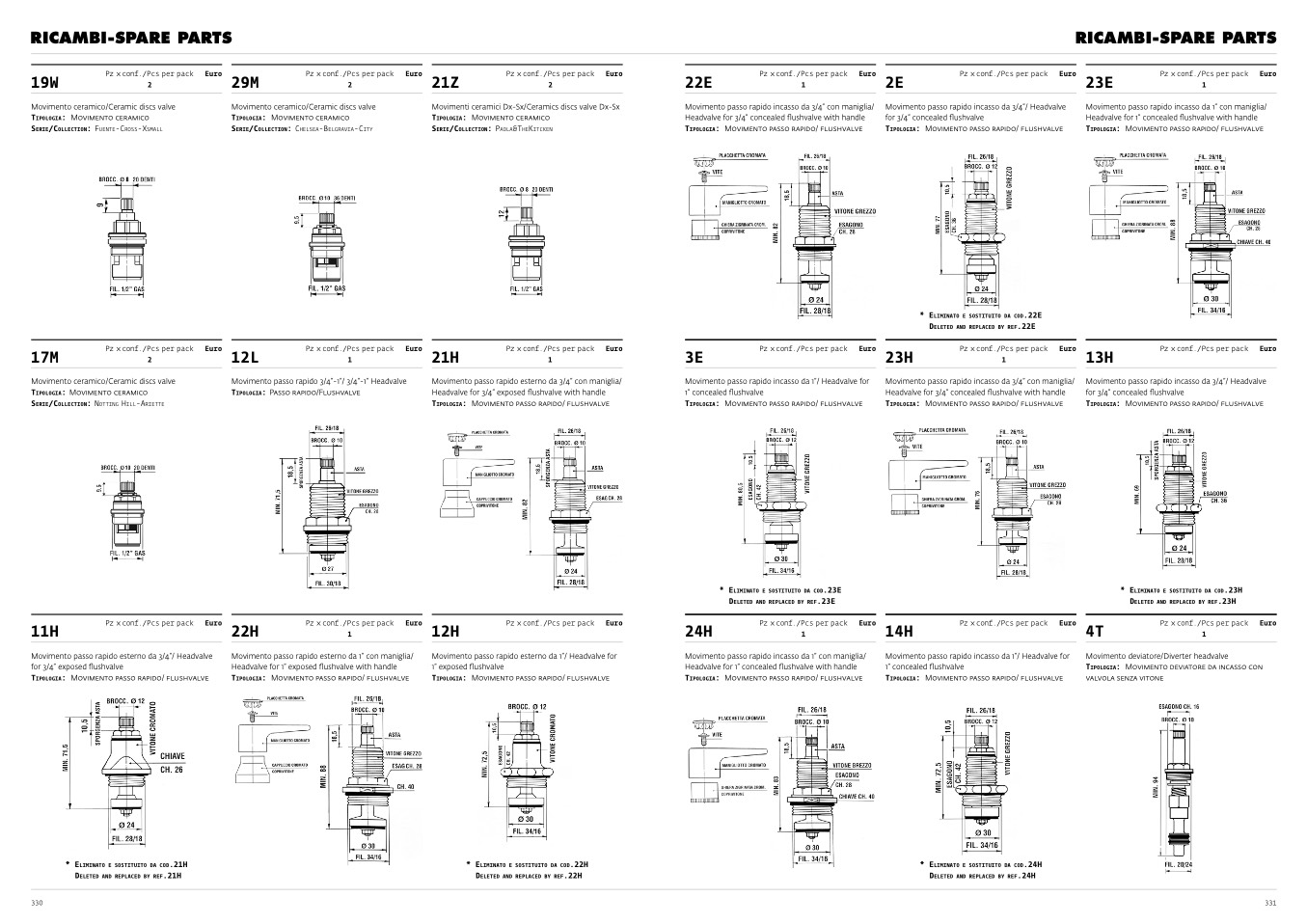 Movimenti ceramici Dx-Sx/Ceramics discs valve Dx-Sx
