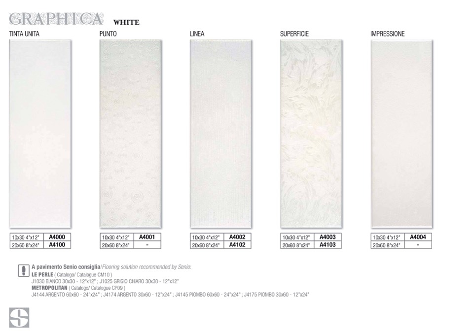 J1030 BIANCO 30x30 - 12”x12” ; J1025 GRIGIO CHIARO 30x30 - 12”x12”