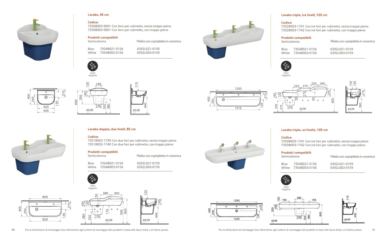 Per le dimensioni di montaggio fare riferimento agli schemi di montaggio dei prodotti in base alle fasce d’et