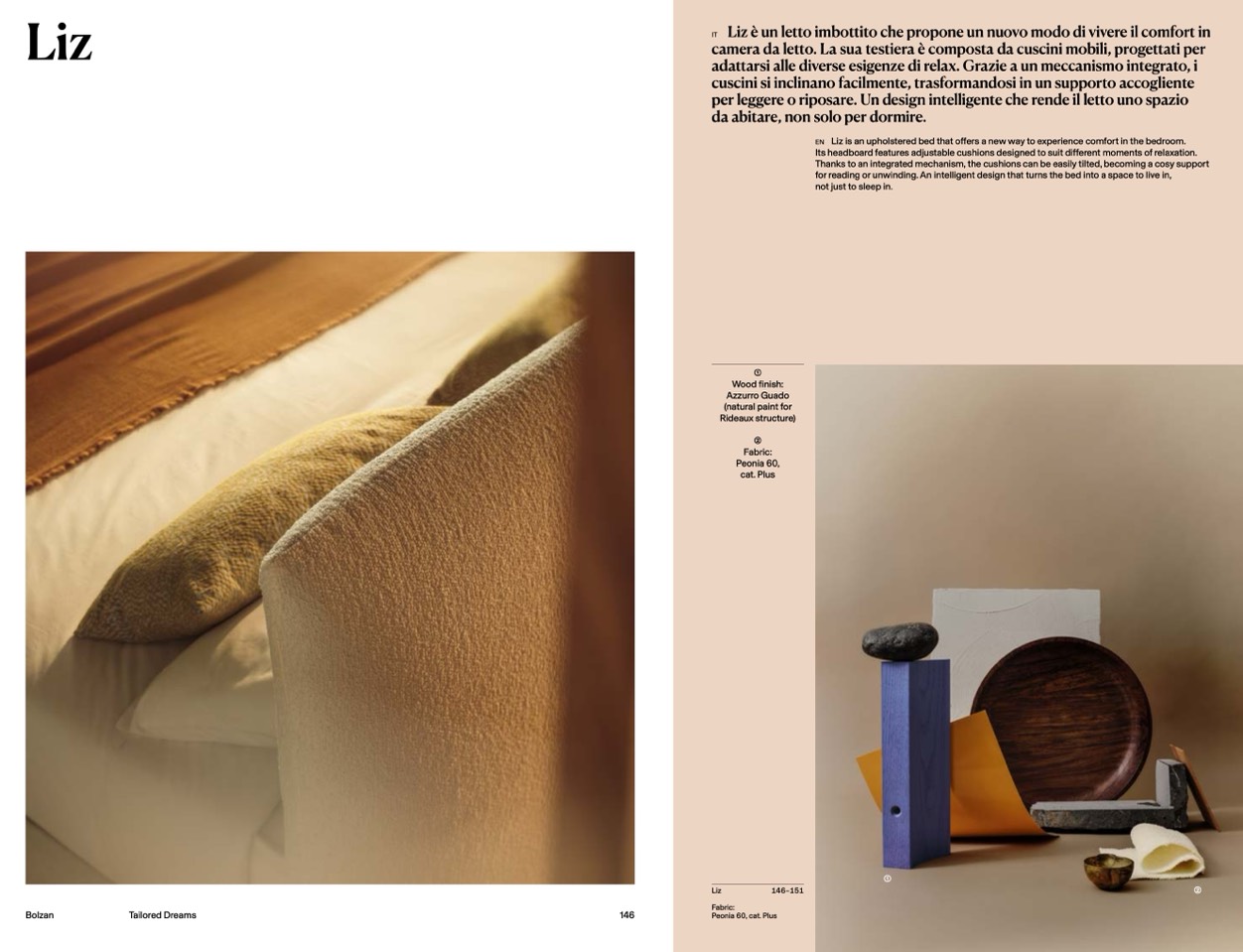 Liz is an upholstered bed that offers a new way to experience comfort in the bedroom.