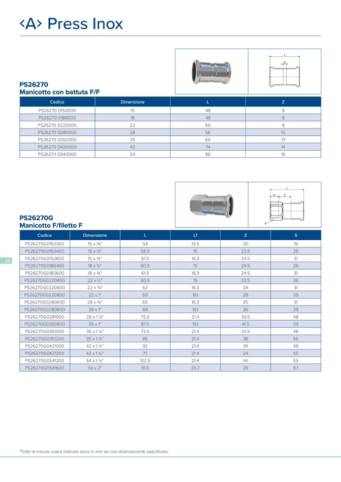 *Tutte le misure sopra indicate sono in mm se non diversamente specificato.