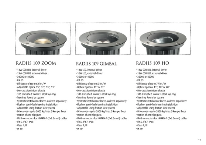 • Adjustable optics: 15°, 32°, 53°, 63°