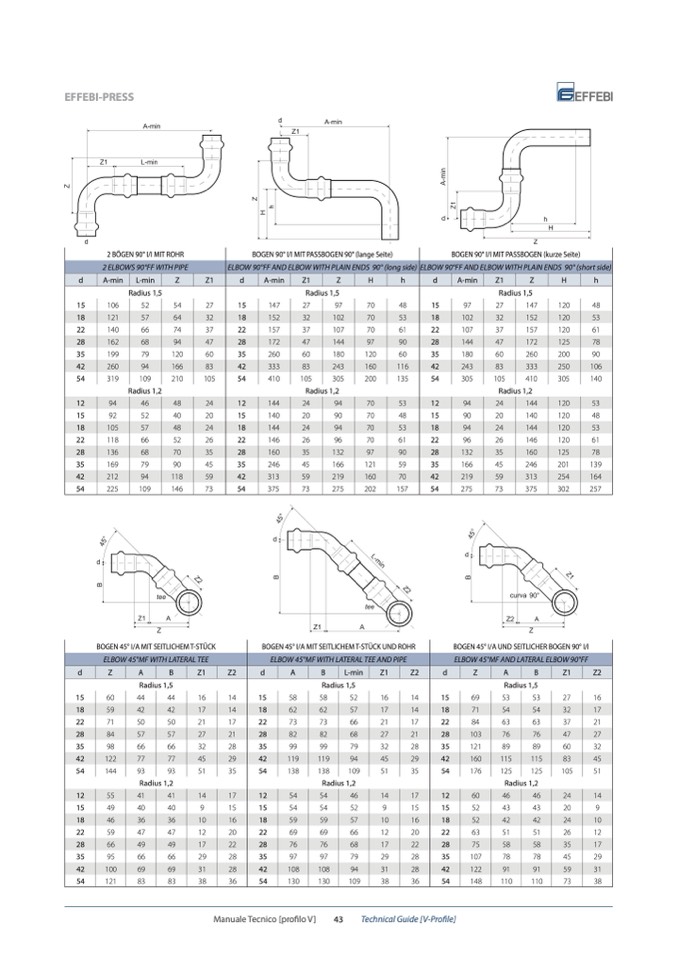 BOGEN 45° I/A UND SEITLICHER BOGEN 90° I/I