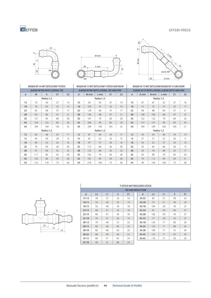 BOGEN 45° I/I MIT SEITLICHEM BOGEN 90° I/I UND ROHR