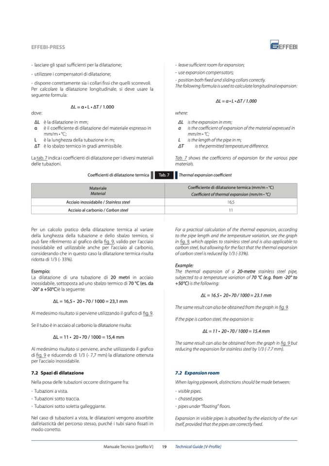Tab. 7 shows the coefficients of expansion for the various pipe