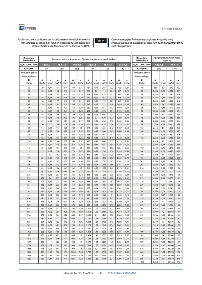Tubi in acciaio al carbonio per riscaldamento (ruvidità k= 0,0015