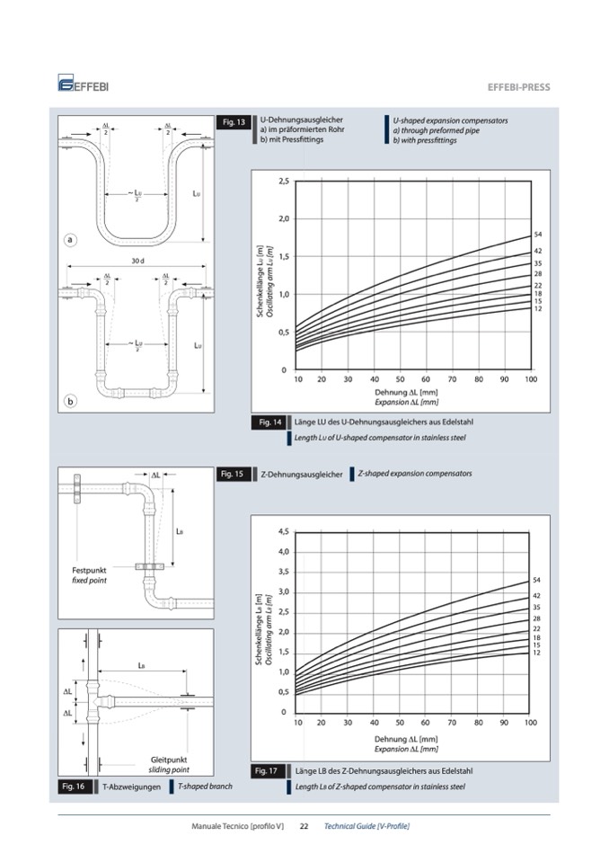 Länge LU des U-Dehnungsausgleichers aus Edelstahl