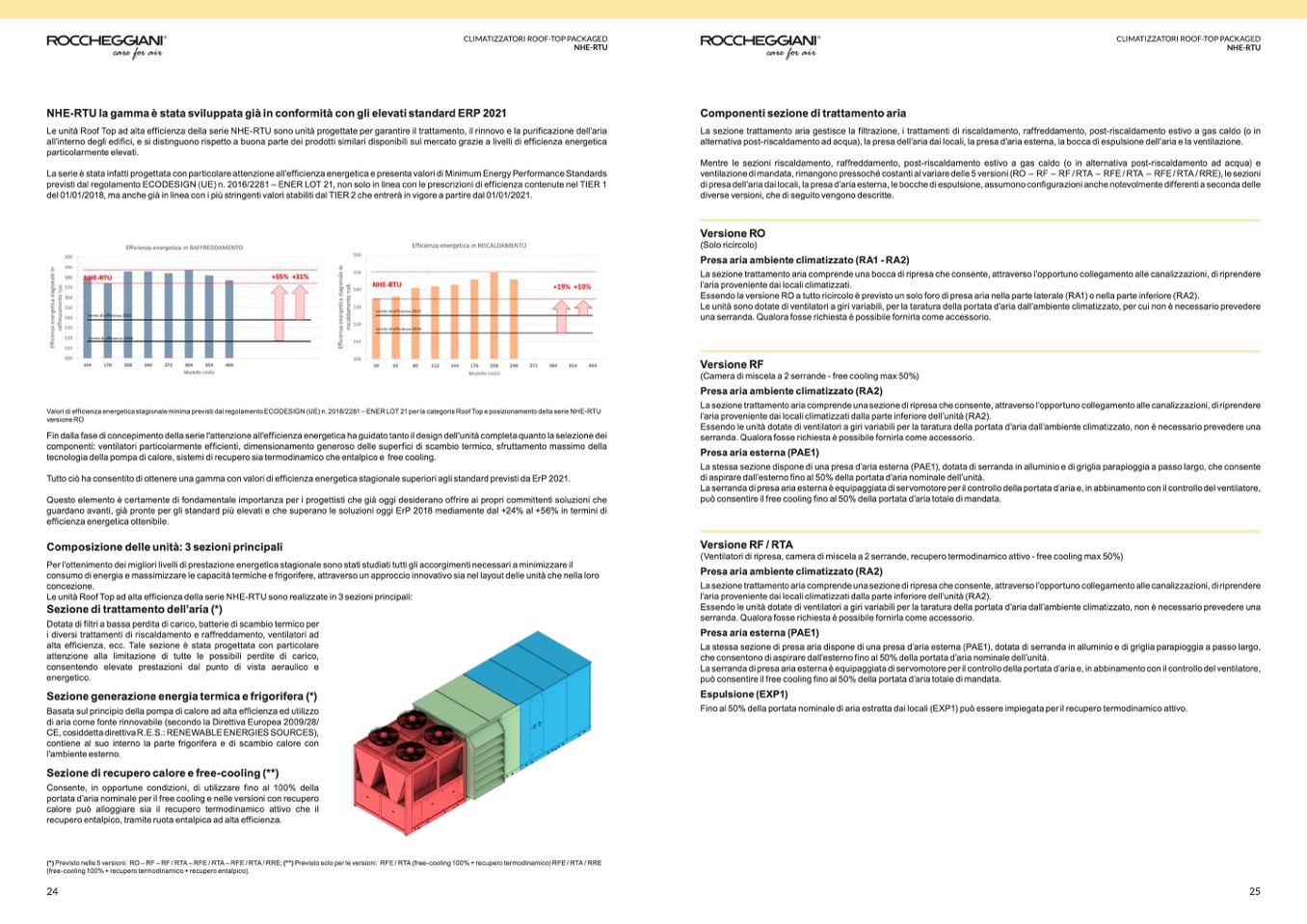Le unità Roof Top ad alta efficienza della serie NHE-RTU sono unità progettate per garantire il trattamento, il rinnovo e la purificazione dell’aria
