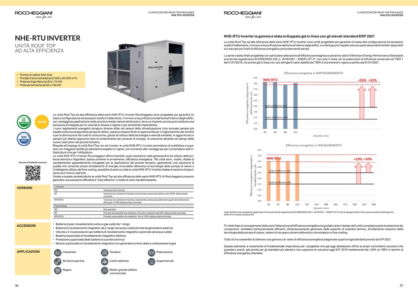 Le unità Roof Top ad alta efficienza della serie NHE-RTU Inverter Roccheggiani sono progettate per garantire (in