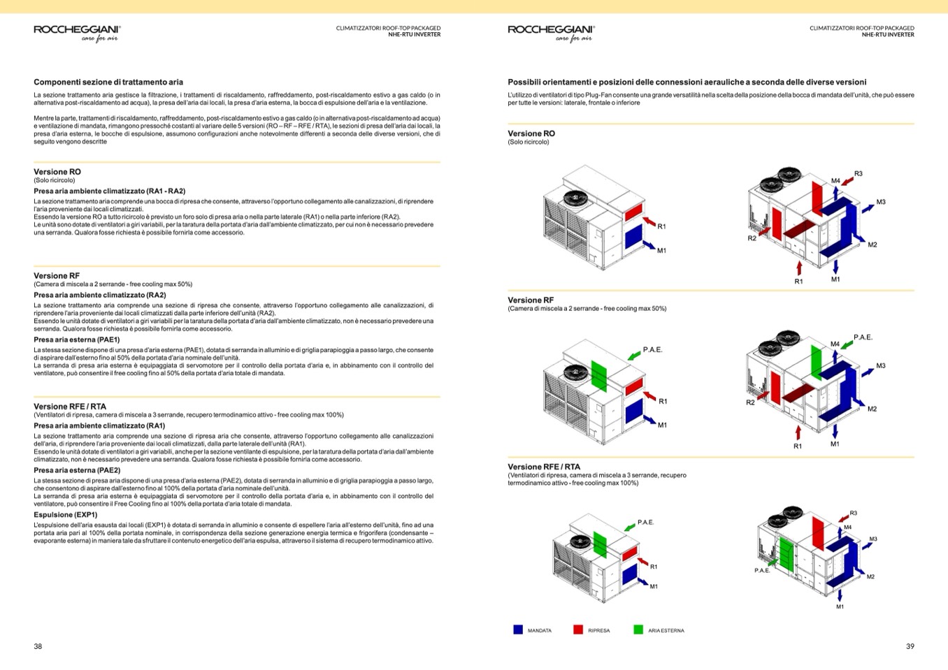 e ventilazione di mandata, rimangono pressoché costanti al variare delle 5 versioni (RO – RF – RFE / RTA), le sezioni di presa dell’aria dai locali, la