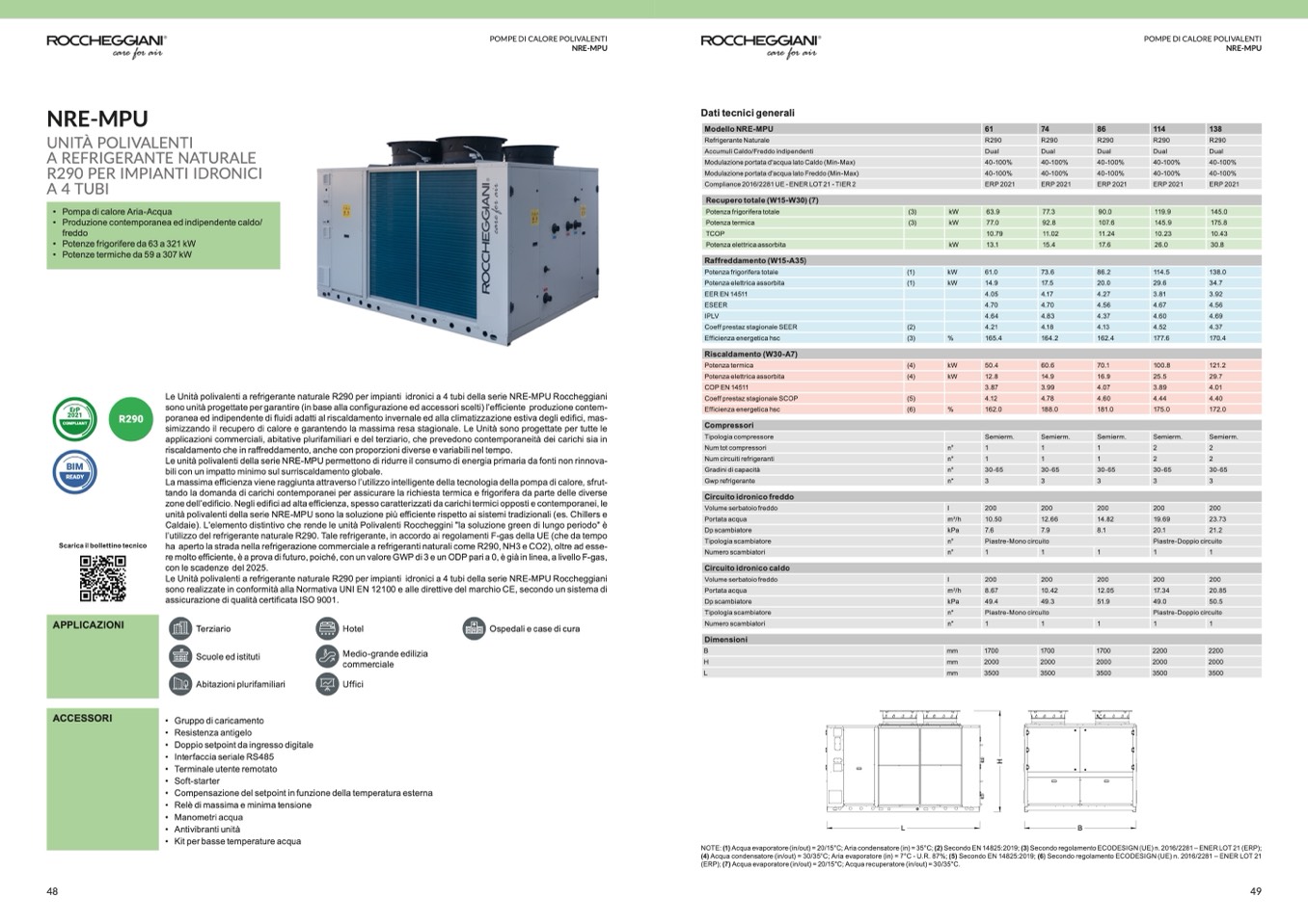 Le Unità polivalenti a refrigerante naturale R290 per impianti idronici a 4 tubi della serie NRE-MPU Roccheggiani